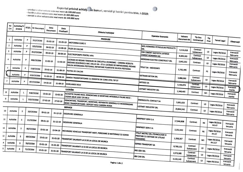 Asta în condițiile în care compania are un contract valabil, cu ARTEGO, în sumă de 3.166.876 de lei numai pe perioada 11 martie -30 iunie 2019 pentru furnizare de bandă transportoare cu inserție de card oțel, această tranzacție fiind parafată în luna martie.