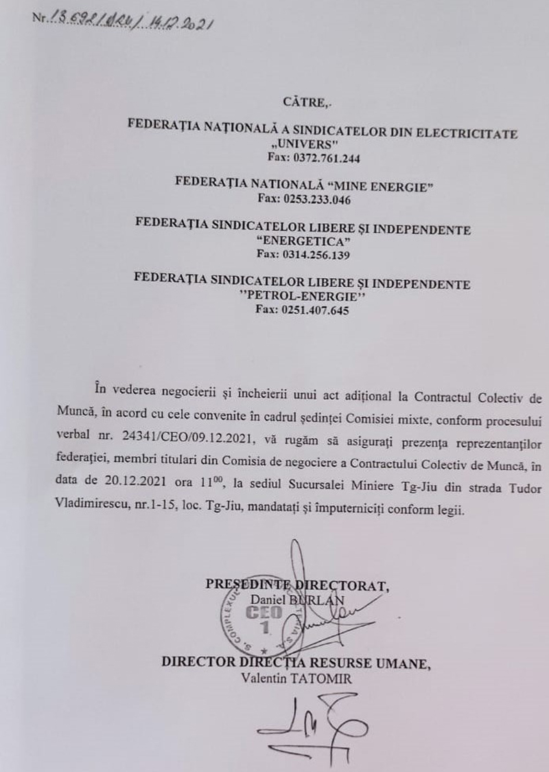 Protestele continuă cu minerii de la Jilț Nord au refuzat să mai intre în schimb, cu o noapte înainte. Grevele de avertisment se transformă în greve generale, Jilț Nord fiind a doua unitate a CEO, după Jilț Sud, aflată în grevă generală. Acțiunile spontane ale angajaților CEO au loc pentru că Legea 197 nu se aplică iar minerii și energeticienii și-au pierdut răbdarea și încrederea în politicieni. Pe de altă parte, conducerea CEO anunță negocieri, în data de 20 decembrie, cu reprezentanții sindicatelor majoritare, pentru creșterea veniturilor de la 1 ianuarie 2022.