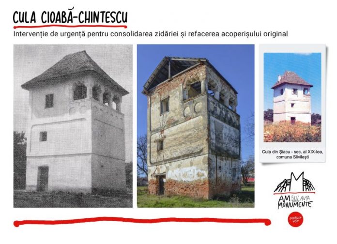 ,,A venit și mult așteptatul moment al lansării Ambulanței pentru monumente – Oltenia vest care va cuprinde județele Dolj, Gorj și Mehedinți și va fi gestionată de către Asociația ,,Inima Olteniei”. Până vom găsi fondurile necesare pentru achiziționarea autoutilitarei și a uneltelor necesare le vom folosi pe cele ale colegilor de la Ambulanța pentru monumente – Transilvania sud, monumentele care suferă nemaiputând aștepta. Anul acesta ne propunem realizarea unei singure intervenții de urgență pe care o vom efectua asupra culei Cioabă-Chințescu de la Șiacu urmând să realizăm minim două intervenții anual pe perioada următorilor cinci ani. Intervenția de la Șiacu va avea loc la sfârșitul lunii august. Primăria Slivilești va finanța materialele de construcție necesare, Muzeul Județean Gorj ,,Alexandru Ștefulescu” ne va pune la dispoziție doi meșteri șindrilari pentru montarea șiței, iar Institutul Național al Patrimoniului va elabora documentația pentru punerea în siguranță a culei. Vom beneficia de sprijinul comunității locale pentru cazare și masă. Lucrările pe care ni le propunem se referă la consolidarea zidăriei și refacerea acoperișului originar. Acoperișul provizoriu care a fost realizat în urmă cu câțiva ani prin sprijinul unor inimoși promotori ai patrimoniului a cedat și este nevoie de înlocuirea urgentă a acestuia. Îi mulțumim domnului arhitect Iulian Cămui pentru punerea la dispoziție a releveului general”, au anunțat responsabilii de proiect.