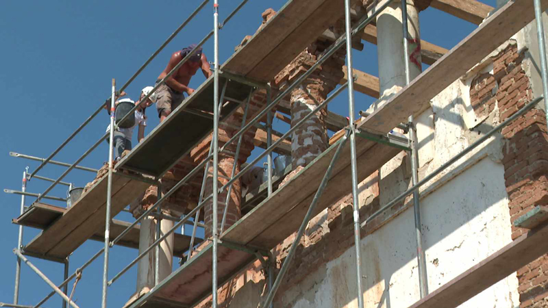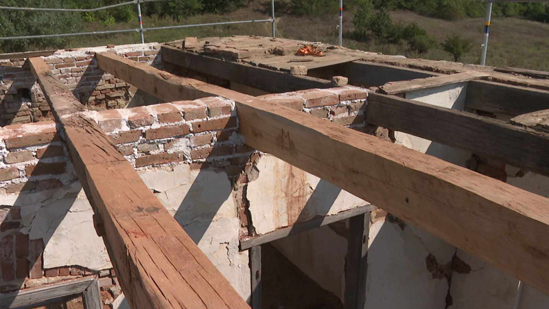 Construcția, veche de două secole și jumătate, a devenit o ruină în ultimii ani, iar în iarnă cei implicați în proiectul „Ambulanța Monumentelor” au demarat o campanie de strângere de fonduri. Nu s-au strâns toți cei 42.000 de euro necesari refacerii acoperișului, dar o mare parte din sumă a fost donată tot voluntar de diverși oameni din țară. Așa că acum la Aninoasa, în satul Groșerea, voluntarii lucrează de zor, chiar dacă temperaturile din miezul zilei sunt greu de suportat. „E cald, e caniculă, dar nu avem ce să facem. Ne dăm cu crème de soare, ne mai punem ceva pe cap, dar umbră nu avem că lucrăm chiar la acoperiș și nu avem unde să ne ascundem de soare. Dar facem totul cu pasiune pentru că de asta am venit aici și suportăm canicula doar ca să terminăm la timp refacerea acoperișului, a spus unul dintre voluntari. Mulți dintre cei prezenți pe șantierul de la Groșerea sunt, de fapt, fete, lucru mai puțin obișnuit pentru astfel de munci. Studente sau chiar absolvente de facultate, acestea fac munci pe care , de regulă, bărbații și le asumă.
