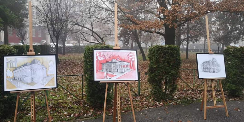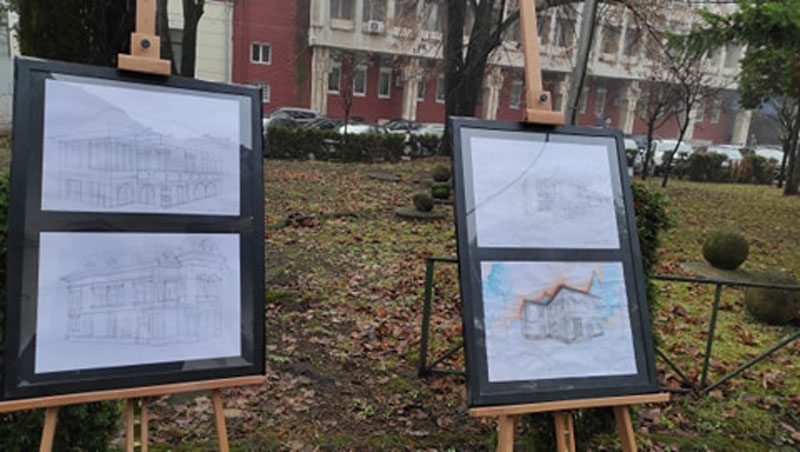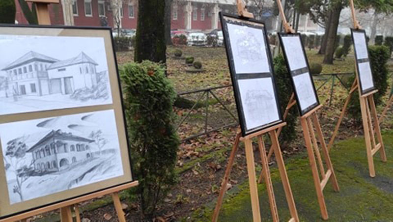 Desenele reprezintă anumite clădiri de patrimoniu, clădiri realizate în cadrul proiectului ,,Tudor Vladimirescu 200 de ani”. Elevii au realizat aceste studii într-o manieră specifică desenului de arhitectură, construind volumetria, analizând cu atenție detaliile, relația dintre plin și gol, folosind tehnica laviului pe hârtie, desen în creion, tuș, tehnică mixtă. Alături de elevii de la specializarea arte vizuale au participat și elevi de la specializarea muzică interpretând colinde românești”, a precizat Daria Haidău, directorul Liceului de Arte Târgu-Jiu.