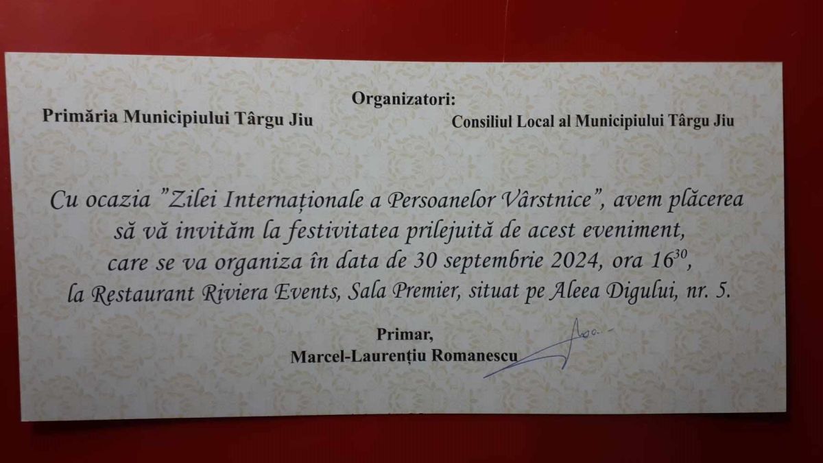 Acest eveniment este dovada prețuirii și respectului acordat de administrația din Târgu Jiu seniorilor municipiului. Contribuția, înțelepciunea și devotamentul lor puse în slujba urmașilor sunt valori la care ne raportăm cu toții. Să le acordăm dragoste și respect bătrânilor noștri mereu! Dragostea și respectul nu costă nimic. Să ne amintim totdeauna de ei și nu numai cu ocazia zilei de 1 octombrie, când este Ziua Internațională a Persoanelor Vârstnice! Să nu uităm că timpul ne îmbătrânește trupurile, însă niciodată sufletele.