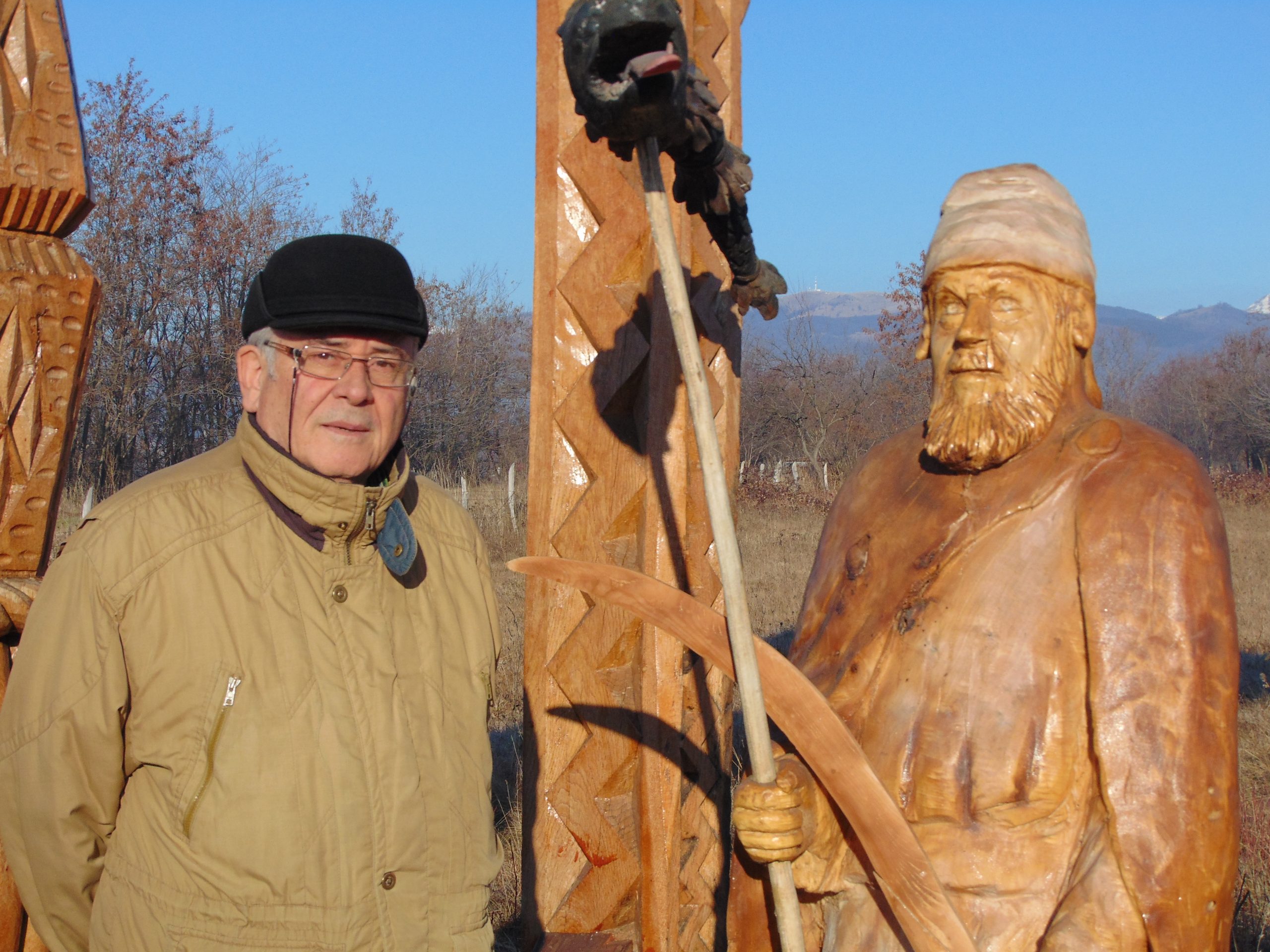 Când ne-am apropiat de Polovragi, norii s-au risipit ca prin farmec, cerul și-a arătat splendoarea albastrului senin, iar soarele ne-a mângâiat cu razele sale. La intrarea în comună, ce doi daci de la poartă ne-au oprit, prin frumusețea și măreția lor și ne-au întrebat de scopul acestei vizite. Am coborât bucuroși și am stat puțin de vorbă cu ei. Aflând că mergem să stăm de vorbă cu un veteran de război din această comună, s-au bucurat foarte tare și ne-au invitat să facem câteva fotografii cu ei. Noi am fost încântați și, după câteva imagini nemuritoare, iluminate de razele solare, am plecat la Primăria Polovragi. Acolo, în lipsa Primarului Gheorghe Epure, plecat cu treburi la București, am stat de vorbă cu domnii Narcis Orzan – Directorul Căminului Cultural Polovragi și Gheorghe Mituță – coordonator la Ansamblul de fluierași și băcițe „Cheile Oltețului” din Polovragi. Ei știau de scopul vizitei noastre, pentru că-i anunțasem pe 15 ianuarie, la Târgu-Jiu, unde am participat, cu toții, la activitatea organizată de Centrul Județean pentru Conservarea și Promovarea Culturii Tradiționale Gorj cu prilejul „Zilei Culturii Naționale” și a împlinirii a 170 de ani de la nașterea poetului Mihai EMINESCU.