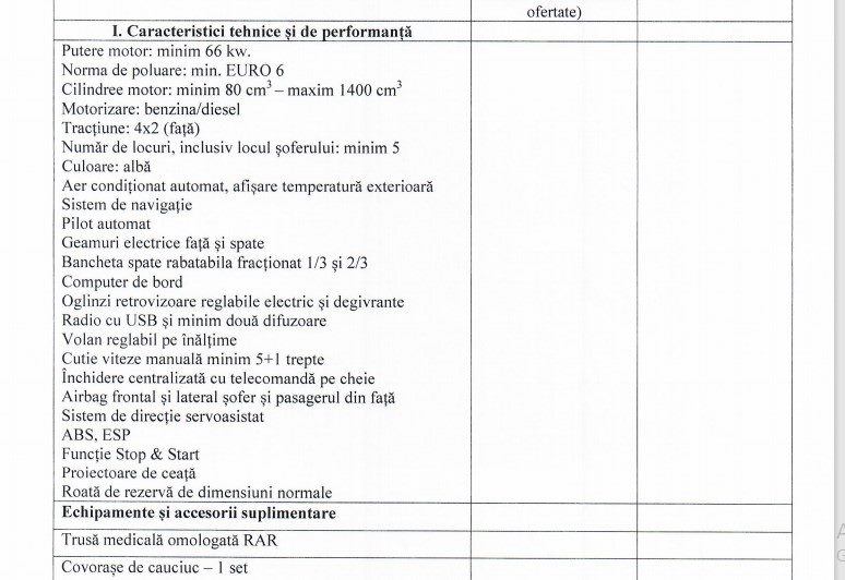„În momentul de față, dotarea din cadrul Spitalului Județean de Urgență Târgu-Jiu este insuficientă, mijloacele auto din dotare fiind depășite fizic și moral și insuficiente ca număr”, se arată în caietul de sarcini.