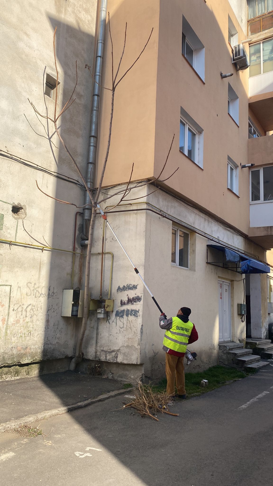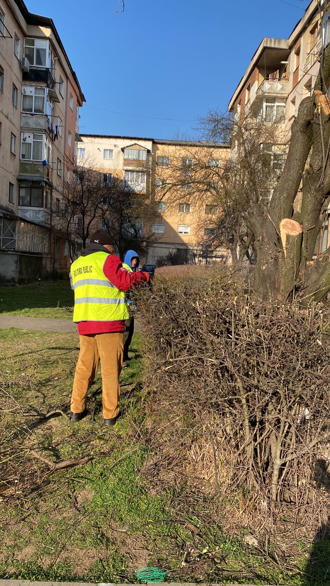 Zilele acestea se lucrează în zona Nicolae Titulescu – Castanilor. Se curăță spațiile verzi și se toaletează vegetația din cartiere.