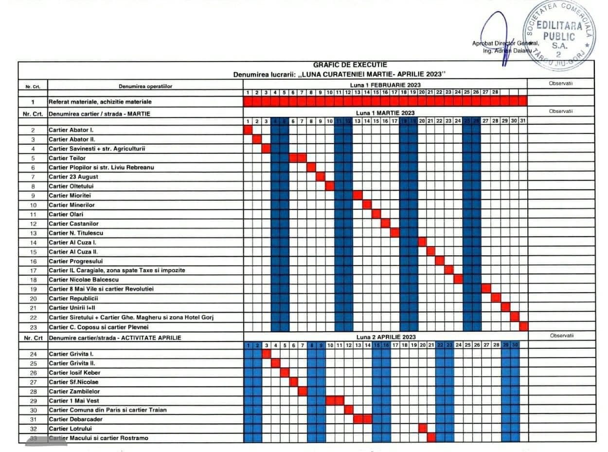 Prezentăm un grafic al acțiunilor ce vor urma, iar în zilele următoare toate asociațiile de proprietari vor fi notificate în ceea ce privește data la care se va intra în fiecare cartier”, a anunțat primarul Marcel Romanescu.