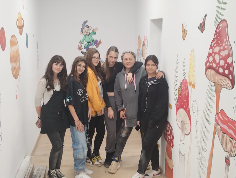 Pereții noii grădinițe din Bâlteni au devenit plini de culoare! Universul poveştilor a prins viaţă, iar lucrarea menită să înveselească și să aducă bună dispoziție micuților preșcolari a fost definitivată cu ajutorul mai multor tineri talentați de la Palatul Copiilor din Târgu Jiu.
