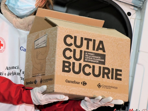 „Cutia cu Bucurie”, ce conţine alimente de bază greu perisabile, va ajunge înainte de Crăciun. În total, peste 18.200 de alimente vor fi distribuite în 26 de judeţe ale ţării. Aceasta este o nouă campanie umanitară realizată de Crucea Roşie Română şi Carrefour România, parteneri de bine de peste 10 ani. Demersul este realizat şi cu sprijinul prompt al Green PC Ambalaje, ce a asigurat producţia cutiilor rezistente la transferul prin toată ţara.