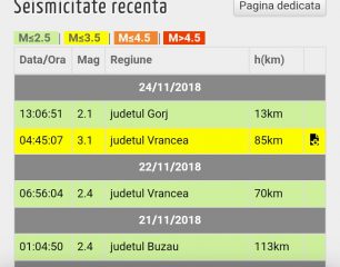 Un cutremur cu magnitudinea de 2,1 grade pe scara Richter s-a produs astăzi, la ora 13.06, în judeţul Gorj, la adâncimea de 13 kilometri. Anunțul a fost făcut de reprezentanții Institutului Naţional de Cercetare Dezvoltare pentru Fizica Pământului.