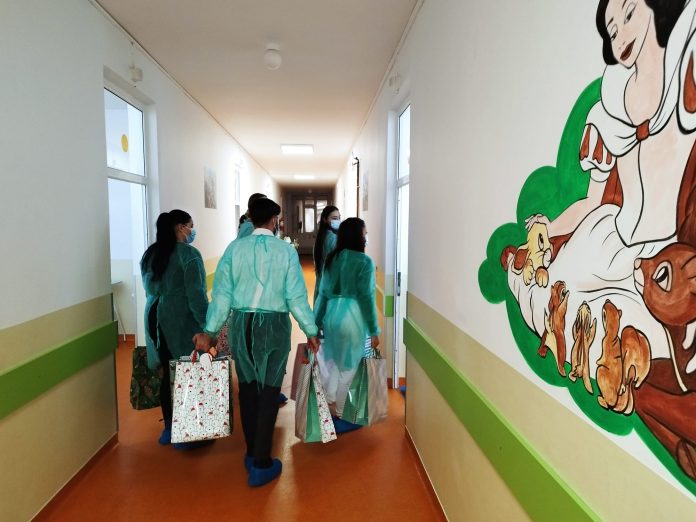 Tinerii au dus astăzi daruri și la spitalele Rovinari și Turceni. Au mers cu fructe, dulciuri la copiii internați în secțiile de pediatrie de aici.