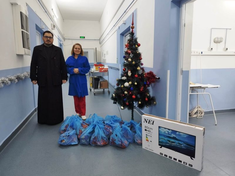 Astfel, preoții Eleodor Stoichin și Ilarie Dovleac, în colaborare cu preotul Ciprian Sîrbu, director-executiv al Asociației Vasiliada – filiala Târgu-Jiu și preot paroh al Parohiei Sfinții Apostoli Târgu-Jiu, implicat în numeroase campanii umanitare, au adus bolnavilor pachete cu fructe, dulciuri și alte produse specifice Crăciunului și au mai donat Secției Oncologie și cinci televizoare care vor fi montate în saloanele bolnavilor.