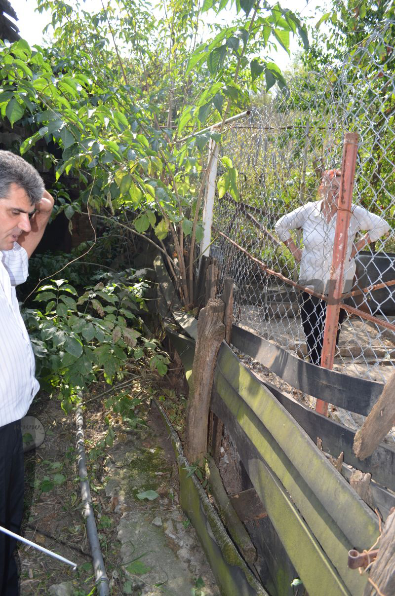 Acesta menționează că dacă vecinul său ar fi respectat proiectul de amplasament al casei, proprietatea sa nu era afectată. Mai mult, dacă vecinul făcea acoperișul tip calcan, așa cum era proiectul inițial făcut de SC EDIFICE SRL, emis în 2002, problemele la casa sa nu ar fi apărut.Omul își protejează de ani buni zidul exterior al locuinței sale, spre vecinul său, cu o bandă de cauciuc, protectoare.