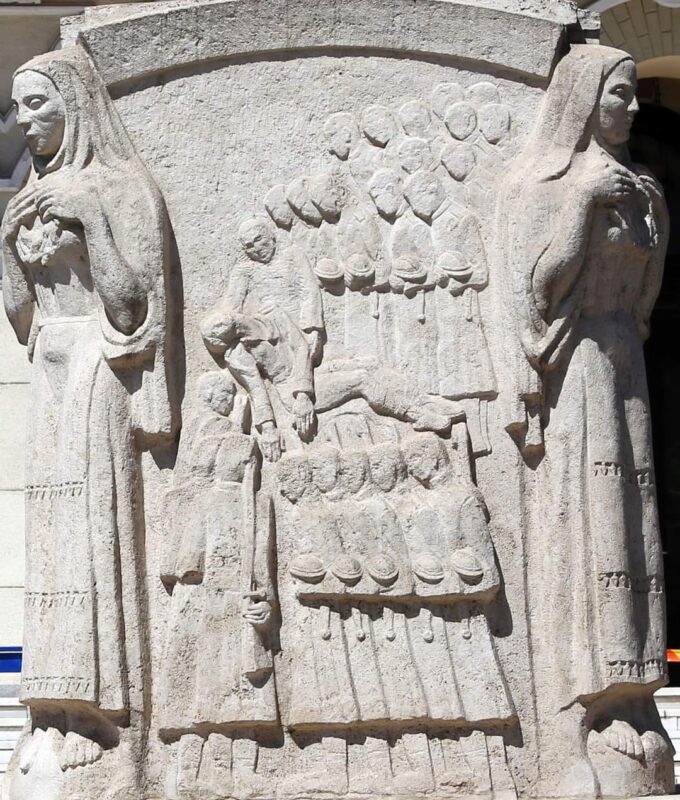 Acest lucru se reflectă chiar și pe mausoleul Ecaterinei Teodoroiu din centrul municipiului Târgu Jiu, pe care se află sculptate patru siluete de femei îmbrăcate în costum tradițional, sugerând parcă eterna rugăciune a mamei în cele patru zări pentru a proteja sufletul copilului dar și un vis în altiță cu aripi frânte, rămas ca o veșnică durere.