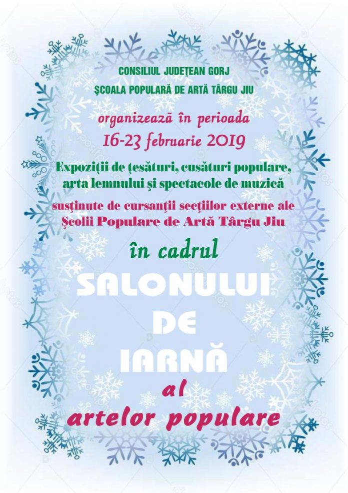 Școala Populară de Artă Târgu-Jiu, instituție subordonată Consiliului Județean Gorj, organizează în luna februarie a fiecărui an “Salonul de iarnă al artelor populare”.