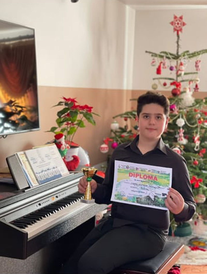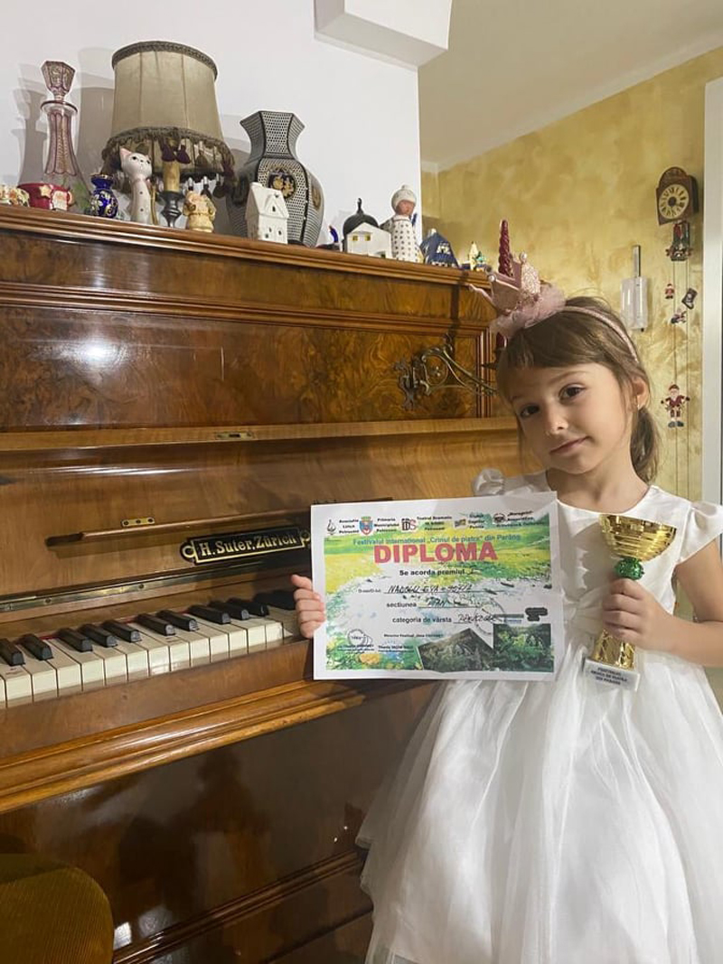 Lor li s-a alăturat în acest an un alt talent, care promite mult și care, la repetiții, cu greu a mai plecat din fața instrumentului, de pe scenă, odată ce a început să cânte! Deoarece, după ce termina de cântat, spunea: ,,Mai vreau!” Este vorba de Eva-Sofia Nadolu, în vârstă de patru ani, care, la prima apariție pe scenă a dat dovadă de o pasiune și un curaj rar întâlnite! Și a obținut un valoros și bine meritat premiu I. Pe 20 decembrie a.c., cei trei elevi, Eva-Sofia Nadolu (preșcolar), Karina-Andreea Mitroi (clasa a II-a) și Rareș-Victorius Gionea-Banculea (clasa a V-a), au participat cu succes la serbarea ,,Fulgi de nea”, a clasei a V-a, dedicată sărbătorilor de iarnă și desfășurată în sala de audiție a Liceului de Arte ,,Constantin Brăiloiu” din Târgu-Jiu, sub îndrumarea aceluiași coordonator dedicat, prof. Eugenia-Liliana Ștefănescu. Pe 21 decembrie 2021, Karina și Rareș au participat la concursul anual intern ,,Tinere talente”, de la nivelul Liceului de Arte ,,Constantin Brăiloiu” Târgu-Jiu, unde au obținut premiul I. Tot de la clasa de pian a doamnei profesor Eugenia-Liliana Ștefănescu, a mai obținut premiul I, Andrada-Cristiana Morcoașe, clasa a VI-a, iar premiul II, Anastasia Țurcaș și Edel-Mihai Croitoru, clasa a IV-a. A fost un semestru plin, care se apropie de final, cu multă muncă, dar și cu multe realizări și satisfacții! Felicitări tuturor!