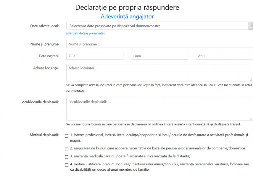 Platforma electronică formular.sts.ro pentru completarea online a declarațiilor pe proprie răspundere și a adeverințelor de angajator este activă, anunță Grupul de Comunicare Strategică. Datele personale nu sunt prelucrate de către STS.