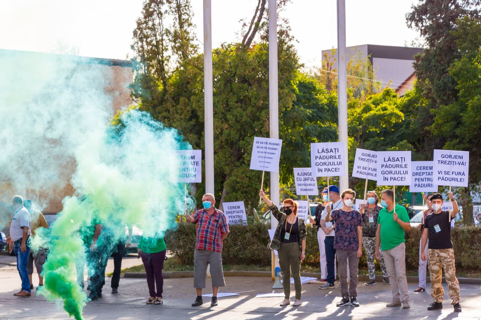 Grupul Civic „Cerem dreptate pentru păduri” a organizat duminică, 20 septembrie, la Târgu-Jiu un protest împotriva exploatările ilegale de lemn din Gorj și din țară, acțiune desfășurată în conformitate cu reglementările Legii nr. 60/1991 privind organizarea și desfășurarea de adunări publice.