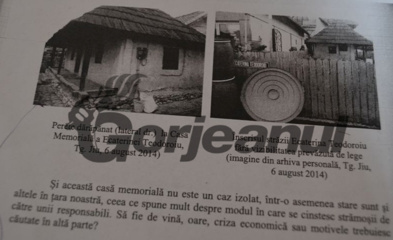 După ce muzeograful a evocat valoarea acestei eroine, oglindită în lucrări științifice internaționale, a făcut o paralelă cu interesul pe care îl acordă românii, costantând că i-a fost neglijată memoria Ecaterinei, pe plan local. “De pildă, casa sa memorială de la Târgu-Jiu, deși protejată prin lege este actualmente asfixiată de noile acareturi din preajmă și de comerțul stradal, dar și îngrijirea și consolidarea ei lăsa de dorit în 2014 când am făcut imaginile de mai jos. Dacă la prima vedere, pare că în această privință este totul sub control, privită pe latura din dos, concluzia este alta”, spunea muzeograful în studiul său, completat cu două fotografii relevante pentru 2014, una care arată un perete lateral dărăpănat, iar alta care arată înscrisul străzii fără vizibilitatea prevăzută de lege.