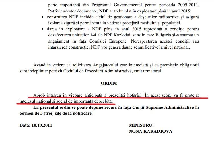 Mai trebuie spus că, autoritățile bulgare dau asigurări că depozitul de deșeuri va fi unul cu nivel scăzut și mediu de radioactivitate și va fi administrat de o companie de stat din Bulgaria, însă un element extrem de important este acela că acesta va fi edificat lângă centrala nucleară de la Kozlodui, la patru kilometri distanţă de granița cu România, în apropiere de toate localitățile românești de malul Dunării din județele Dolj și Olt.