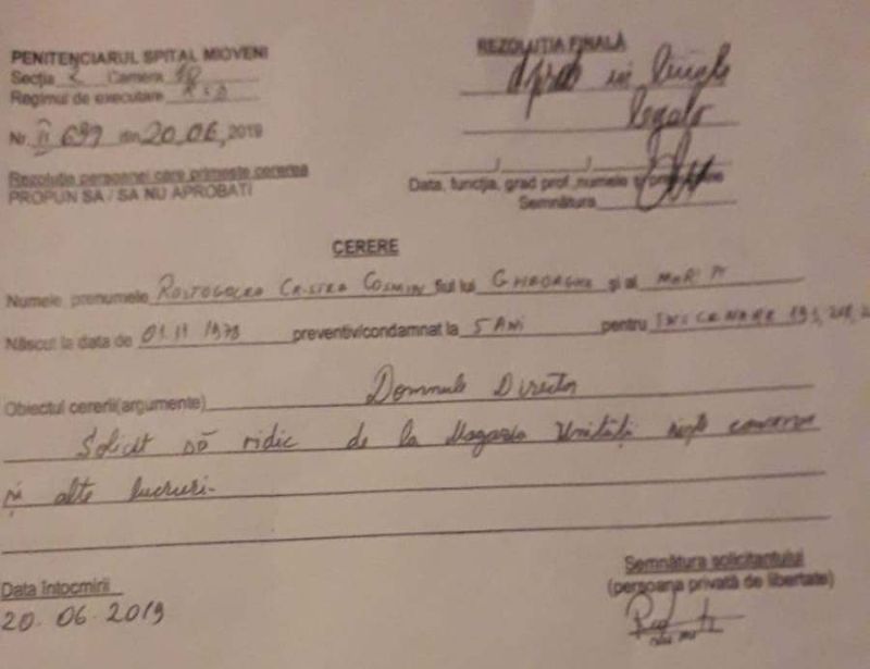 Cererea îi este aprobată, fără ca nimeni din penitenciar să își pună semne de întrebare de ce vrea deținutul Rostogolea obiectele personale cu care a intrat în închisoare.