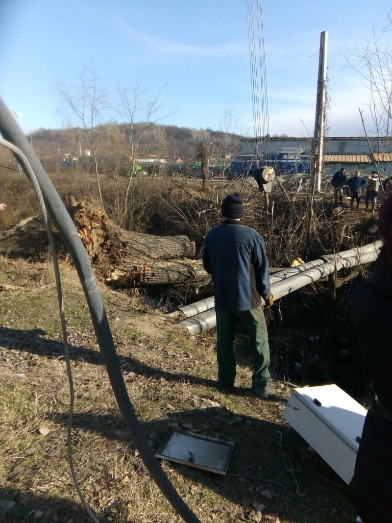 De duminică dimineața de la ora 7.30, angajați ai SGA Gorj au făcut eforturi să degajeze zona. Directorul Serviciului de Gospodărie a Apelor Gorj și inginerul-șef Doina Isar au coordonat, timp de câteva ore întreaga operațiune, anunțând autoritățile locale și cerând sprijin pentru degajarea zonei afectate. ,,Urmare a vântului puternic, că a fost cod galben de vânt, s-a înregistrat acest incident, la intrare în municipiul Motru. O plută s-a desprins din malul apei și a căzut transversal peste malurile albiei minore a pârâului Ploștina. A fost afectată conducta de termoficare care alimentează o parte a orașului Motru. De asemenea, cablurile de alimentare cu energie electrică ale municipiului și cele ale celor două unități CEO. Mai exact, sediul EMC Motru a fost afectat, dar și liniile ELCFU și conducta Aparegio. Noi am intervenit, la fața locului, de la primele orele ale dimineții. Am reușit să degajăm prima plută, a fost destul de mare, avea patru brațe… S-a intervenit cu muncitori ai SGA Gorj, cu drujbe, plus o macara din partea EMC și a uzinei de agent termic. Pluta avea un diametru de un metru și jumătate la bază și s-a desprins de mal. O alta urmase același curs”, a declarat, pentru Gorjeanul, duminică dimineața, inginerul-șef Doina Isar. Câteva ore mai târziu, veștile au fost și mai bune, deși o locomotivă a ELFCU a staționat câteva ore pe șine neputând să își facă drumul spre unitate, urmare a celor întâmplate. ,,Am deblocat albia și am scos lemnele căzute. Acum oamenii de la UATAA, de la ELCFU acționeză. Până în acestă seară se va rezolva toată situația, mai exact totul va reveni la normal. Doar câteva locuințe din zonă au fost afectate la capitolul căldură și apă”, a precizat, la ora 15.00, inginerul-șef SGA Gorj.