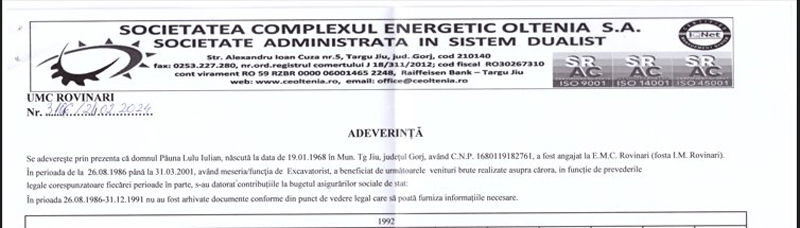Sunt peste 300 de dosare aflate pe rolul instanțelor de judecată, în care minerii și energeticienii au primit adeverințe necesare pensionării în baza legilor 197 și 74, în care li se comunică faptul că CEO nu deține documente care să justifice munca în condiții speciale, pe anumite perioade.