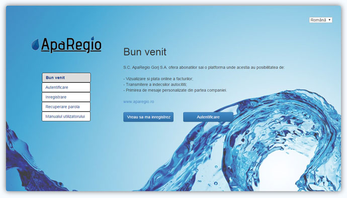 De-a lungul timpului, compania de apă a pus la dispoziţia clienţilor metode diversificate de plată – prin reţelele bancare, bancomate, oficiile poştale, reţeaua PayPoint, fără perceperea vreunui comision. Noua facilitate de plată, solicitată de utilizatorii familiarizaţi cu internetul şi tranzacţiile online, vine în completarea celor existente. După data de 25 a fiecărei luni, clienţii care primesc facturi individuale pot utiliza portalul www.aparegio.ro pentru a transmite indexul, a efectua plăţi sau a transmite sesizări, avarii şi sugestii.