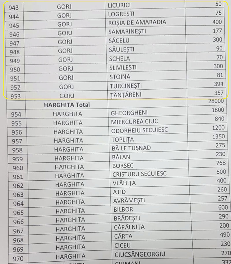Pe lângă aceste UAT-uri, au mai luat bani la rectificare primăriile din Fărcășești și Drăguțești, fiecare câte 400.000 de lei. Și acestea au primari PNL. Primăria Berlești, cu edil PNL, a primit și ea la rectificare 300.000 de lei, la fel și Cîlnic tot 300.000 de lei, dar și Albeni și Arcani, prima luând 120.000 de lei, iar a doua 133.000 de lei. Toate au primari de culoare galbenă.