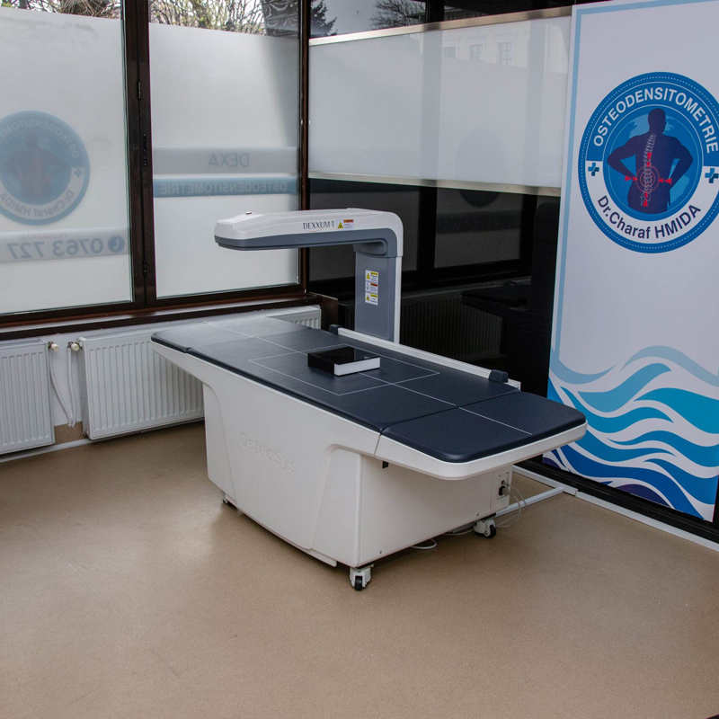 Cunoscutul doctor Hmida Charaf deține în cadrul acestui laborator cel mai modern aparat existent în județul Gorj, acesta fiind folosit pentru identificarea osteoporozei pentru pacienții de peste 40 de ani.