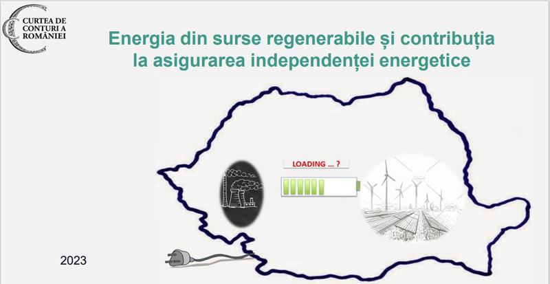 Curtea de Conturi a României a efectuat, în perioada septembrie 2022 – august 2023, la Ministerul Energiei, o misiune de audit al performanței privind ,,Energia din surse regenerabile și contribuția la asigurarea independenței energetice”. Analiza a vizat perioada 2017-2022 și a urmărit evaluarea gradului în care a fost asigurată independența energetică din perspectiva utilizării surselor regenerabile de energie, ca urmare a politicilor/strategiilor elaborate de minister, precum și analiza evoluției prețului energiei electrice în contextul tranziției energetice. Raportul Curții de Conturi, dat publicității la 30 noiembrie 2023, relevă faptul că, ,,În intervalul auditat s-a înregistrat o diminuare a producției de electricitate (-12,44%), în contextul retragerii din exploatare a capacităților de producere cu o putere instalată de 4.848 MW (-2.680 MW pe bază de cărbune și -2.168 MW pe bază de hidrocarburi) care nu a fost substituită de punerea în funcțiune de noi capacități pe bază de surse regenerabile (+37,56 MW). Pe fondul reducerii producției interne de energie electrică, România a devenit importator net începând cu anul 2019, iar soldul balanței comerciale a înregistrat în acest sector un deficit de 735,8 milioane euro, în perioada 2019-2021, în contextul în care prețurile medii ponderate la care s-au efectuat tranzacțiile de import au fost superioare celor la care s-a efectuat exportul. Existența unor prețuri medii ponderate superioare pentru activitatea de import față de cele de export poate fi explicată prin efectuarea operațiunilor de export de electricitate la momentul în care la nivelul piețelor este înregistrat un excedent, cu precădere în situația în care există un excedent de energie regenerabilă (zile însorite și vânt puternic), iar a operațiunilor de import în situațiile în care la nivel național este înregistrat un consum ridicat față de producția internă. O astfel de situație scoate în evidență necesitatea introducerii unor surse de stocare a energiei electrice care să acumuleze energie în perioadele de excedent și să o elibereze la momentul creșterii consumului, România având la finalul anului 2022 o singură astfel de capacitate licențiată (7,4 MW)”. Potrivit documentului citat, diminuarea investițiilor programate la nivelul operatorilor din sectorul producției de energie electrică și înregistrarea unui grad redus de realizare al programelor de investiții (între 5,48% și 51,25%) a condus la ,,neasigurarea independenței energetice”. Mai mult, în condițiile în care România își asumase o creștere a puterii instalate în noi capacități de producere a energiei electrice din surse regenerabile, pentru anul 2022, cu 1.816 MW, conform Planului Național Integrat în domeniul Energiei și Schimbărilor Climatice 2021 – 2030, acest obiectiv nu a fost atins decât în proporție de 0,64%. ,,La nivelul operatorilor aflați sub autoritatea Ministerului Energiei au fost puse în funcțiune, în intervalul auditat, capacități de producere a energiei electrice cu o putere instalată de numai 15,56 MW”, se arată în raportul Curții de Conturi. Pe acest fond, ”România a înregistrat cea mai mare creștere a prețului electricității la nivelul UE-27 în semestrul II 2022 (+112,35%), comparativ cu perioada similară a anului 2021, ocupând primul loc și în ceea ce privește raportarea prețului la puterea de cumpărare, cu 119,25% peste media UE-27”.