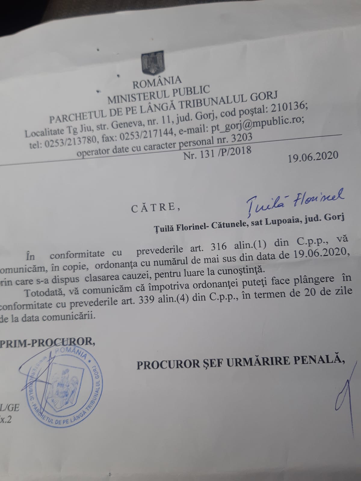 Document: Dosarul Ydail, clasat de procurorii PT Gorj!