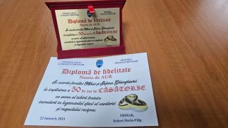 „Încă o familie din Rovinari sărbătorește nunta de aur! Familia Mihai și Ștefana Ghiorghievici a primit astăzi din partea mea și a Consiliului Local al orașului Rovinari, placheta aniversară „Model de viață” și un premiu în valoare de 1.000 de lei, la împlinirea a 50 de ani căsnicie neîntreruptă. Cu siguranță, cei 50 de ani de conviețuire nu au fost presărați doar cu momente plăcute, însă datorită înțelepciunii celor doi, au ajuns astăzi într-un punct în care tot mai puține familii ajung. De aceea, familia Ghiorghievici reprezintă un adevărat model pentru noi toți și merită întreaga noastră admirație. Felicitări cu prilejul aniversării nunții de aur! Vă doresc multă sănătate, fericire și bunăstare!”, a transmis primarul orașului Rovinari.