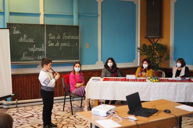 A urmat un program artistic unde au fost prezentate cântece minunate pe versuri eminesciene, remarcându-se Larisa Șimon la chitară, elevii Magda Popescu și Ionuț Forțofoi care au cântat „Pe lângă plopii fără soț” și câteva recitări pline de sensibilitate ale unor poezii din creația marelui poet, transmise de elevii: Popescu Ioana, Paraschivescu Daria, Cuteanu Ana și Ștefania Avramescu.