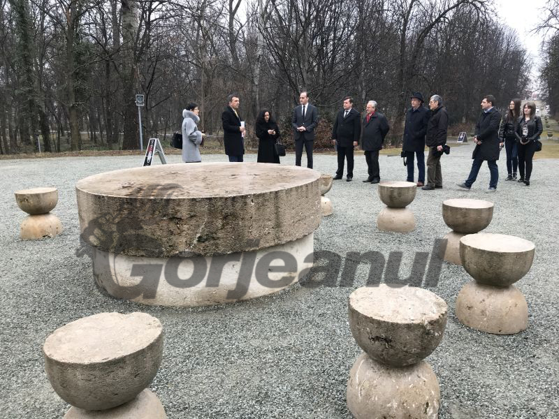 Dus prin parc să vadă operele lui Constantin Brâncuși, secretarul de stat l-a avut drept ghid pe profesorul universitar Ion Mocioi, care i-a arătat inclusiv locul în care Poarta Sărutului este „verde” tot timpul din cauza infiltrațiilor din sol. Profesorul spune că problemele respective au apărut după restaurarea din anul 2000, ceea ce înseamnă că atunci lucrările au fost făcute de mântuială sau că operele nu au fost întreținute ulterior așa cum ar fi trebuit. „Este vorba despre apă infiltrată aici și care menține igrasia aici, în zona de nord a Porții. S-a observat după ce aici a fost o amenajare făcută în 2000, de atunci a apărut această disfuncție, care însă este remediabilă. În fiecare zi Poarta trebuie curățită fin, dar nu cu jet, ci prin alte metode. Eu știu că pe vremea lui Ceaușescu un singur om, timp de 20 de ani, a venit cu pămătuful de acasă și cu sticle de apă și le curățata în fiecare dimineață. Atunci nu au fost probleme”, a explicat Mocioi. Primarul Marcel Romanescu a menționat că are deja un contract semnat pentru întreținerea operelor, dar care va intra în vigoare după ce se va finaliza un studiu de lucru. Edilul dă asigurări că există și fonduri și mai spune că atât timp cât el va fi în funcție nimeni nu va mai spăla operele cu jetiera, așa cum s-a întâmplat în trecutul nu prea îndepărtat. În timpul vizitei în Parcul Central, secretarul de stat venit de la București a dat asigurări și că la vară sunt mari șanse să vedem operele brâncușiene de la Târgu-Jiu incluse în patrimoniul mondial al UNESCO. „Verdictul, să îi spunem așa, final, va fi dat în vara acestui an, vara lui 2020. Din perspectiva Institutului Național de Patrimoniu, încă o dată o spun, dosarul este complet. Nu ar trebui să fie probleme și cred că lucrurile s-au lămurit prin discuțiile care au avut loc între experți”, a menționat Liviu Brătescu. Acesta a reușit să facă și o mică gafă, anunțând mutarea în parcurile cu opere a două alte lucrări care ar fi trebuit să fie incluse în Ansamblul Monumental Calea Eroilor. Pe parcursul discuțiilor cu jurnaliștii, secretarul de stat și-a dat seama că lucrurile nu stau chiar așa, mai ales că lucrările despre care vorbea sunt expuse deja în grădina din preajma Muzeului Național Constantin Brâncuși, fosta „Casa Gănescu” de lângă Prefectură.