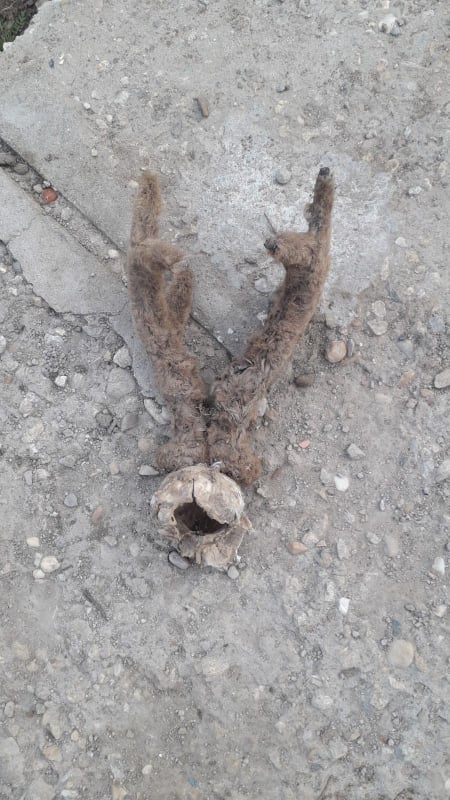 ,,A lătrat câinele, era ora 21.30, era întuneric afară, și am ieșit la poartă. Am reușit să văd o femeie cu un Mercedes cu numere de Italia care s-a dat jos din mașină cu plasa în mână și trăgea de portiera mașinii mele, parcate în fața porții, pentru a încerca să-mi introducă în autoturism plasa cu capetele de vânat. M-a văzut, pentru că am strigat la ea, a aruncat plasa și s-a urcat în mașină și a fugit. Am sesizat Poliția prin 112, iar la fața locului a venit o patrulă de poliție de la Stoina care a văzut plasa de lângă mașină și cea aruncată în curte. Nu au consemnat incidentul, dar mi-au zis să mă prezint cu ele la Poliția Târgu-Cărbunești, să dau declarație. Am fost audiat joi dimineața, iar polițiștii mi-au zis că vor veni după capetele ce mi-au fost aruncate pe proprietate, deoarece miroseau îngrozitor.