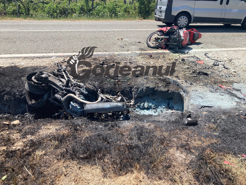 Un tânăr motociclist din Republica Moldova, aflat pe o motocicletă înmatriculată în Austria, a intrat în depășirea unei mașini, numai că a intrat pe contrasens. Aici, a izbit în plin o altă motocicletă, înmatriculată în Ungaria, pe care se aflau doi soți. Motocicleta acestora a luat foc în urma impactului și s-a făcut scrum. Au intervenit apoi pompierii militari pentru a lichida incendiul, iar trei echipaje medicale i-au transportat pe răniți la spitalul din Târgu-Jiu.