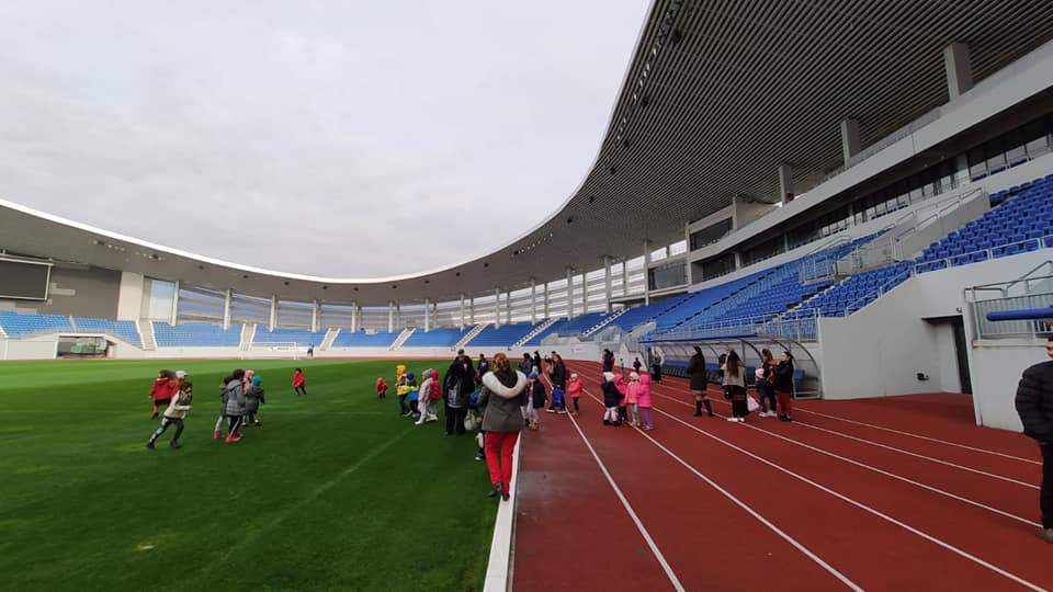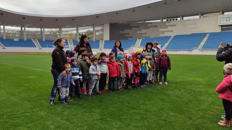 Copiii au fost încântați să discute cu primarul Marcel Romanescu, să viziteze Sala de Consiliu și biroul primarului, dar mai ales să se joace pe Stadionul Municipal unde au alergat pe gazon și pe pista de atletism.