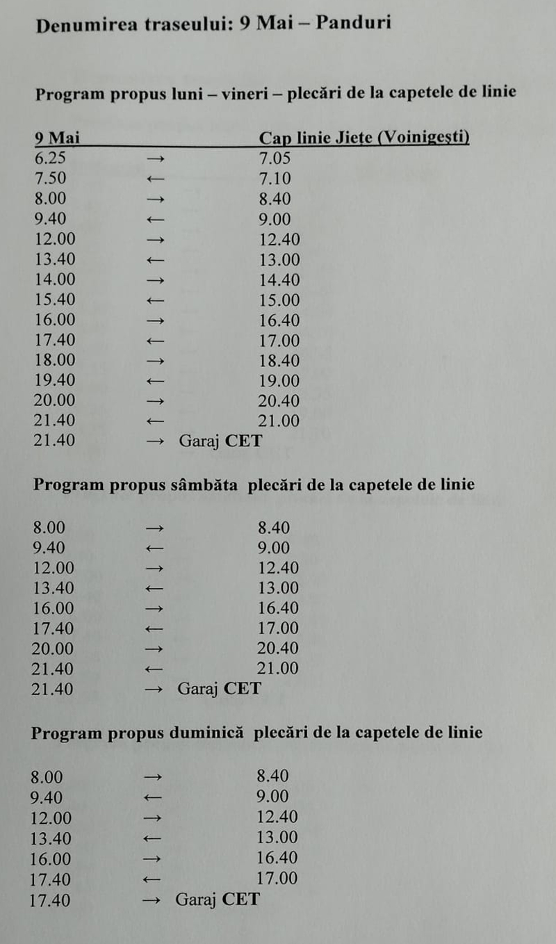 Autoritățile locale au anunțat înființarea a două trasee noi pentru mijloacele de transport în comun, Incepând cu data de 13 mai. Primul va fi pe ruta Dedeman – Coloana Infinitului – ANL Narciselor cu stațiile: Dedeman – cap de linie, Victoria Mall (stație nouă), Liceul Sportiv, Blocul Turn, Gară, Comisariat, Complex Gârdu, Parc Coloana Infinitului, Parc Coloana Infinitului 2 (stație nouă), Cimitir (stație nouă), Trivoli, Magazin DP (stație nouă) și ANL Narciselor – cap de linie.