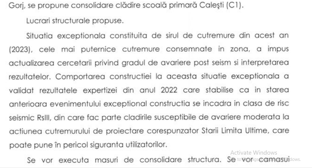 Școala gimnazială din Stănești și școala primară din satul Călești au fost afectate de cutremurele care au zguduit anul trecut județul Gorj.