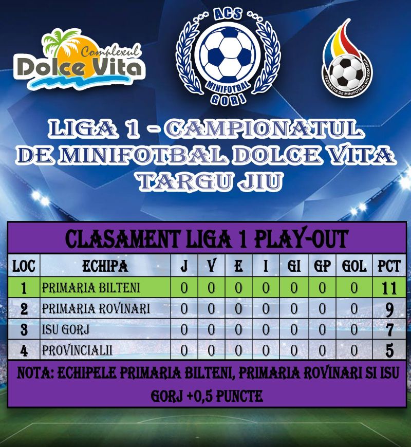 Marigab Turceni s-a calificat în Play-off în dauna celor de la Primăria Bîlteni. În etapa 18, Marigab a trecut de Peppy Dolce Vita, în timp ce Bîlteni a pierdut meciul cu Minprest Rovinari. Lupta la titlu va fi aprigă. Punctele din sezonul regular se înjumătățesc, așa că Dream Team și Real Târgu Jiu, învingătoare sâmbătă cu Primăria Rovinari, pornesc cu 19 puncte, în timp ce Minprest Rovinari și Farmacia Victoria cu 18 puncte. Marigab Turceni și Peppy Dolce Vita pleacă în Play-off cu 13 puncte.