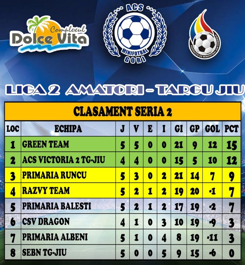 În Liga 2, Seria 1, s-a produs o schimbare de lider după eșecul celor de la Pro Team și victoria campioanei IPJ Gorj. În Seria 2, Green Team a bifat a cincea victorie consecutivă în meciul cu Răzvy Team.