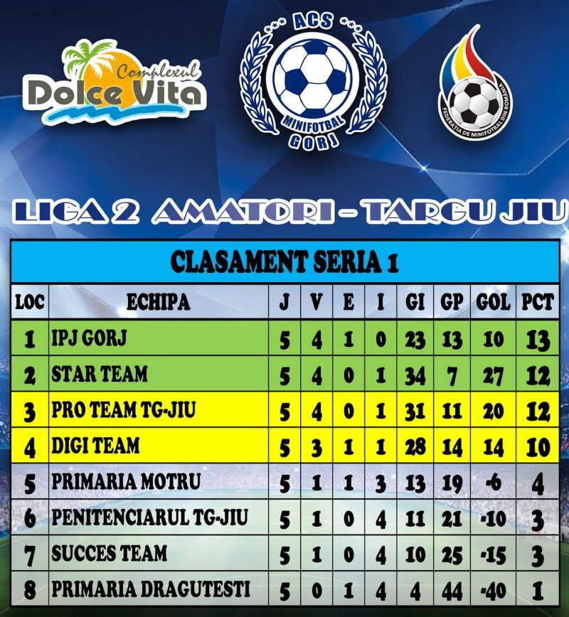 De eșecul celor de la Dream Team au profitat rivalii de la ACS Victoria Tg-Jiu, care s-au impus în meciul dificil cu Wektra Team și au egalat la puncte campioana la finalul turului.