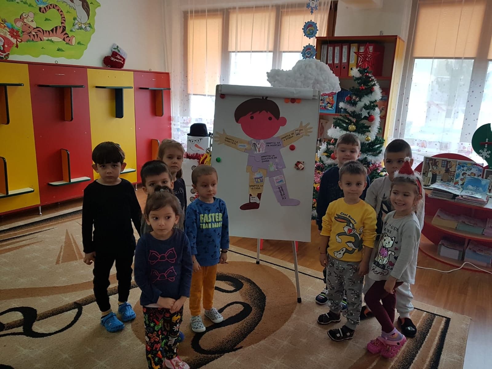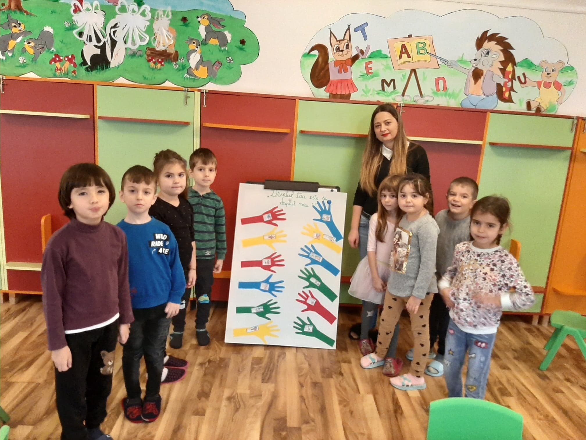 Preșcolarii de la Grădinița cu Program Prelungit „Mihai Eminescu” din Târgu-Jiu au sărbătorit, sub îndrumarea cadrelor didactice, Ziua Drepturilor Omului, marți, 10 decembrie 2019, prin organizarea proiectului educativ-extrașcolar „Dreptul meu este și dreptul tău!”. Datorită activităților desfășurate în cadrul acestui proiect educativ-extrașcolar am ajutat la promovarea și interiorizarea valorilor, ca: respect, dreptate, egalitate, libertate, solidaritate, prin formarea și exteriorizarea unor atitudini de auto-respect, respect pentru ceilalți, implicare și acțiune constructivă, responsabilitate socială, interes pentru probleme globale. De asemenea, activitățile desfășurate au condus la o mai bună relaționare în cadrul echipelor și a investigării atitudinilor pe care le au față de ceilalți colegi.