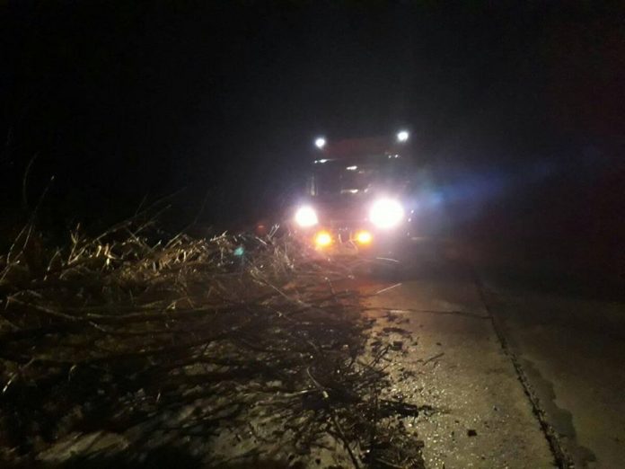 Un arbore a fost pus la pâmânt de vântul puternic, blocând drumul naţional 67B, pe Dealul Cărbuneştiului. Reprezentanţii Secţiei Drumuri Naţionale Târgu-Jiu intervin la faţa locului pentru deblocarea drumului.