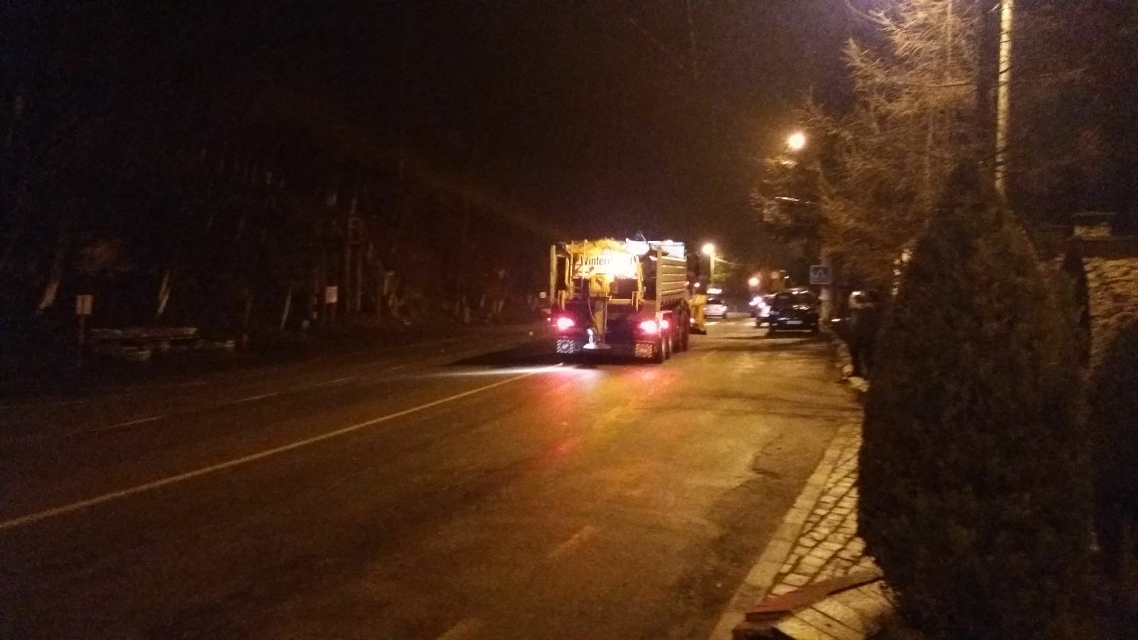 Baia de Aramă- Valea Cernei, zăpadă 1-3 cm. Se acționează cu 6 utilaje; ninge mărunt.
