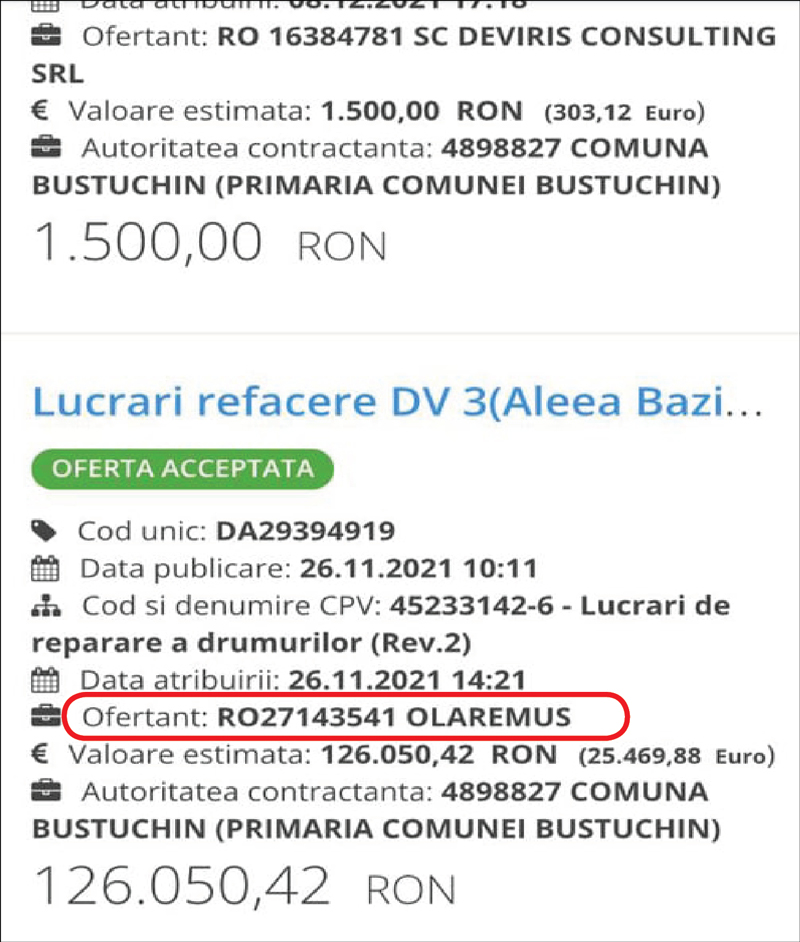 Drumul din satul Poienița, cătunul Țoțoi, din comună Bustuchin, s-a crăpat pe o distanță de peste o sută de metri, falia fiind extrem de adâncă, fapt care face aproape impracticabil drumul comunal în cauză. Interesant este că pentru consolidarea acestuia, s-au făcut lucrări în ultimele maxim trei luni, autoritatea locală investind în această arteră peste o sută de mii de euro. Practic, lucrările au fost obținute prin încredințare directă de firma fiului patronului de la Gidazi, din Dolj, firmă abonată la contractele cu statul în județul nostru și, mai ales, în Bustuchin. OLAREMUS a obținut astfel, o data, 90.250 de euro în luna iulie, și încă 25.649 de euro, chiar luna trecută, pe 25 noiembrie. Artera rutieră arată însă că după cutremur, asta și pentru că lucrările s-au realizat fără simț de răspundere și cu muncitori necalificați, luați cu ziua, direct din comună.