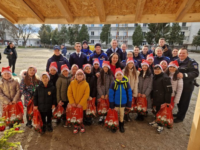 Dulciuri și fructe pentru copiii care i-au colindat pe jandarmi