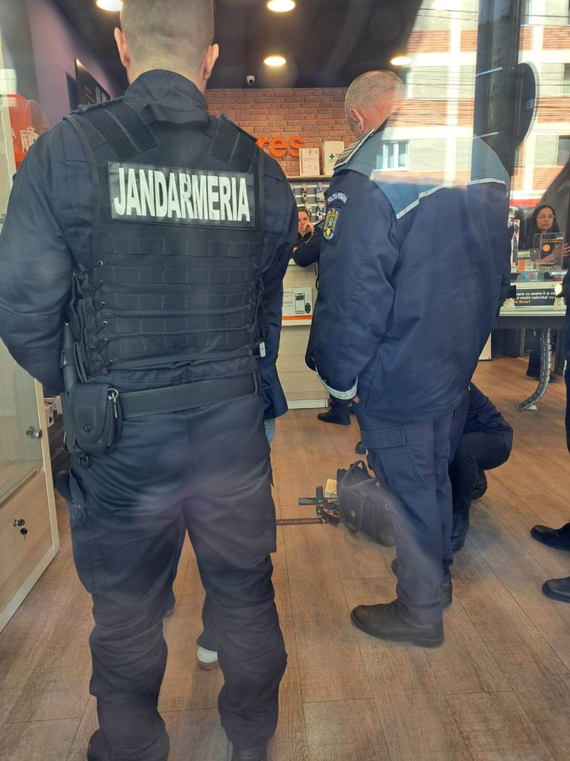 Salariata a reușit să cheme poliția iar forțe de poliție și jandarmerie au imobilizat femeia al cărei mobil părea furtul.