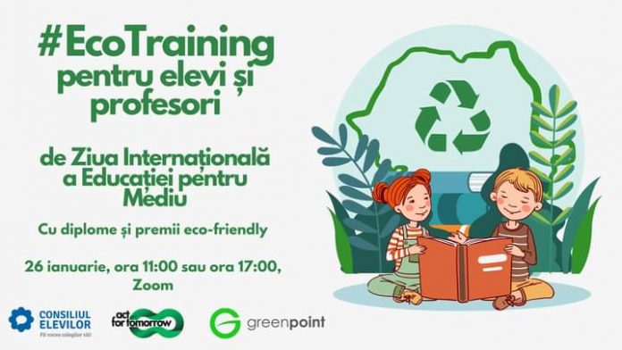 Elevii și profesorii preocupați de problemele de mediu sunt invitați să sărbătorească Ziua Internațională a Educației pentru Mediu, pe 26 ianuarie, printr-un EcoTraining online și interactiv, organizat Asociația Act for Tomorrow și Consiliul Național al Elevilor. „Pregătim diplome pentru fiecare participant înscris și premii cool și eco-friendly, oferite de GreenPoint Management, pentru cei mai activi și atenți dintre voi! Înscrierea la eveniment se face individual pentru elevi și colectiv pentru cadrele didactice care doresc să își înscrie clasele la sesiune. Pentru participare este necesară completarea acestui formular https://forms.gle/tGXXfdGjcMhJhPPS8, până luni 25 ianuarie, ora 17:00. Vor exista două sesiuni de training, în prima parte a zilei și în a doua parte, pentru a da șansa tuturor doritorilor să participe. Ne dăm întâlnire pe Zoom, de la ora 11:00 la 12:00, sau de la ora 17:00 la 18:00, iar fiecare participant înscris va primi linkul de conectare pe e-mail. De asemenea, pregătim și alte surprize pentru a marca această zi. Sperăm că sunteți pregătiți și vă așteptăm în comunitatea noastră, care luptă ca educația pentru mediu și sustenabilitate să devină prioritate națională în România”, au anunțat organizatorii.