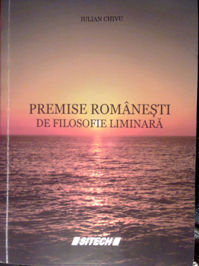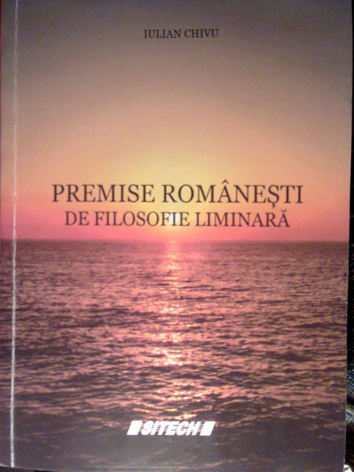 Am primit această carte sugestiv intitulată «PREMISE ROMÂNEŞTI DE FILOSOFIE LIMINARĂ», Editura SITECH, Craiova, 2021, în virtutea unei reciprocităţi ocazionate de circuitul predestinat al scrisului consacrat unei idei, însă orice ancorare într-o situaţie ocazională integrativă şi interogativă deschide perspectiva unor disponibilităţi cognitive şi afectice care transcend unui pretext declarat sau unui scop dinainte stabilit! Domnul profesor şi ziarist Iulian Chivu, născut în ziua Sf. Ap., întâiul Mucenic şi Arhidiacon Ştefan (27 decembrie 1948), în satul Văcăreşti (Teleorman), absolvent de studii filologice şi strălucit profesor de limba şi literatura română, timp de 42 de ani, păstrează în tolba nevoinţelor domniei sale amprenta studiilor postuniversitare de Jurnalism şi Ştiinţele Comunicării, fiind jurnalist la «România liberă» (1993-2005) şi în presa locală (2006-2008), membru în colegiile redacţionale ale unor publicaţii cum sunt: Ziarul «Naţiunea», «Constelaţii Diamantine», «Banchetul», colaborator al unor reviste din ţară şi din străinătate, cu diferite studii de etnologie, eseuri, proză şi note critice, o prezenţă notabilă în mai multe dicţionare de specialitate şi de literatură română!